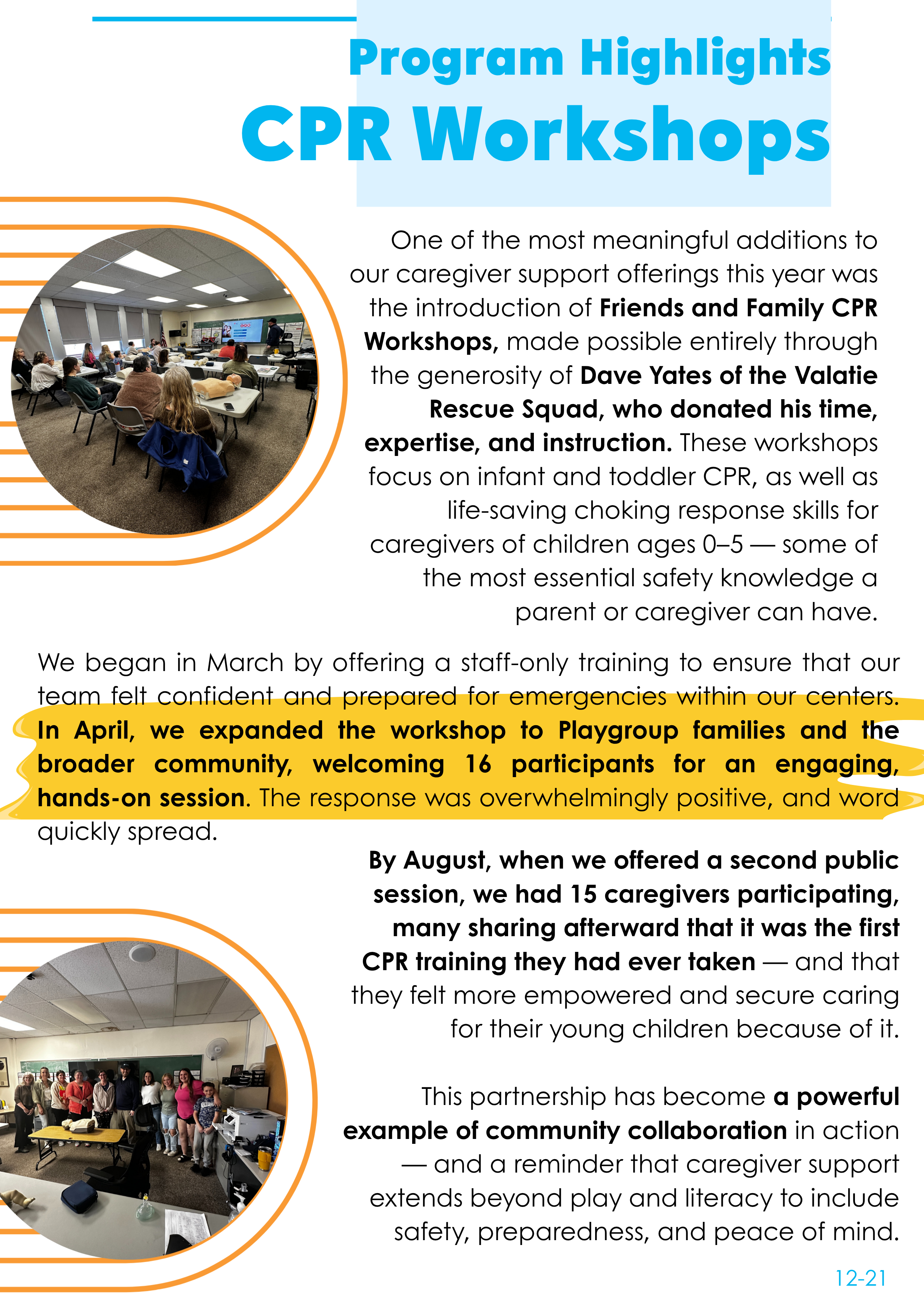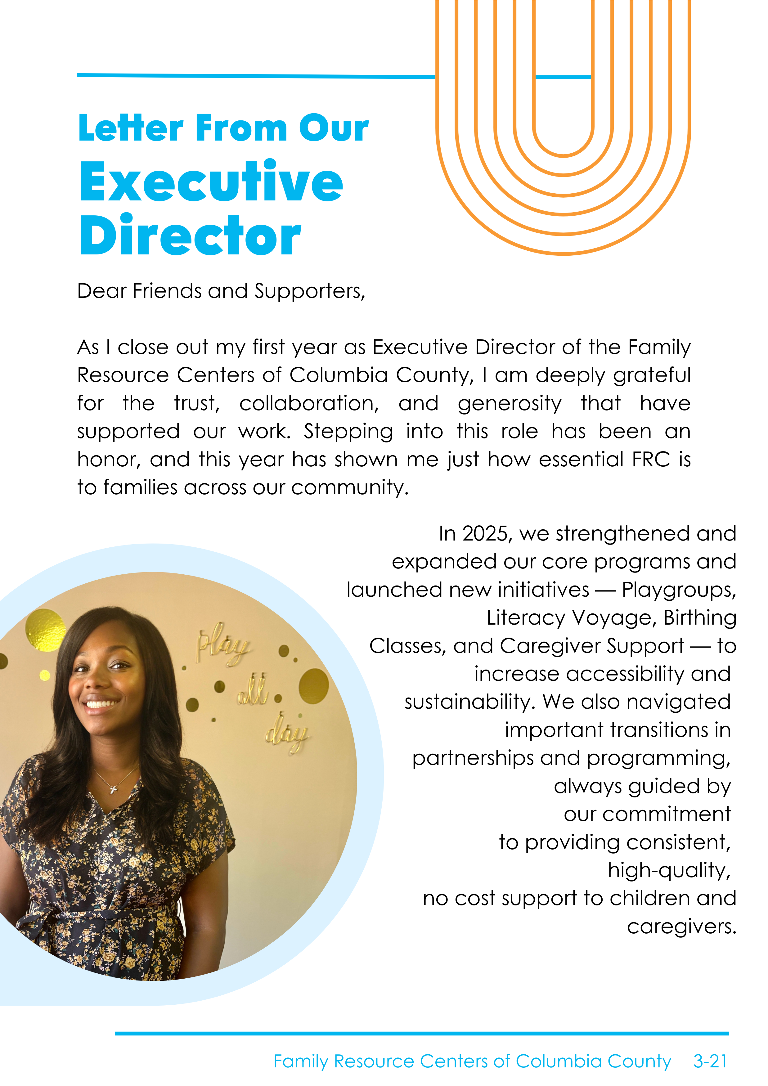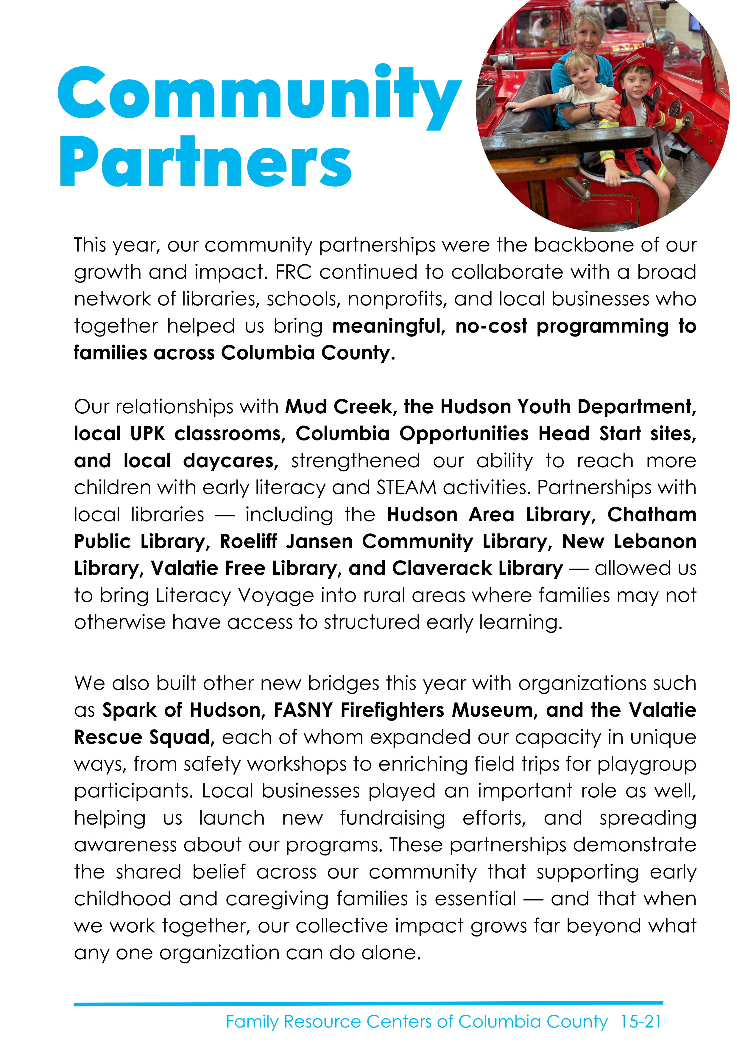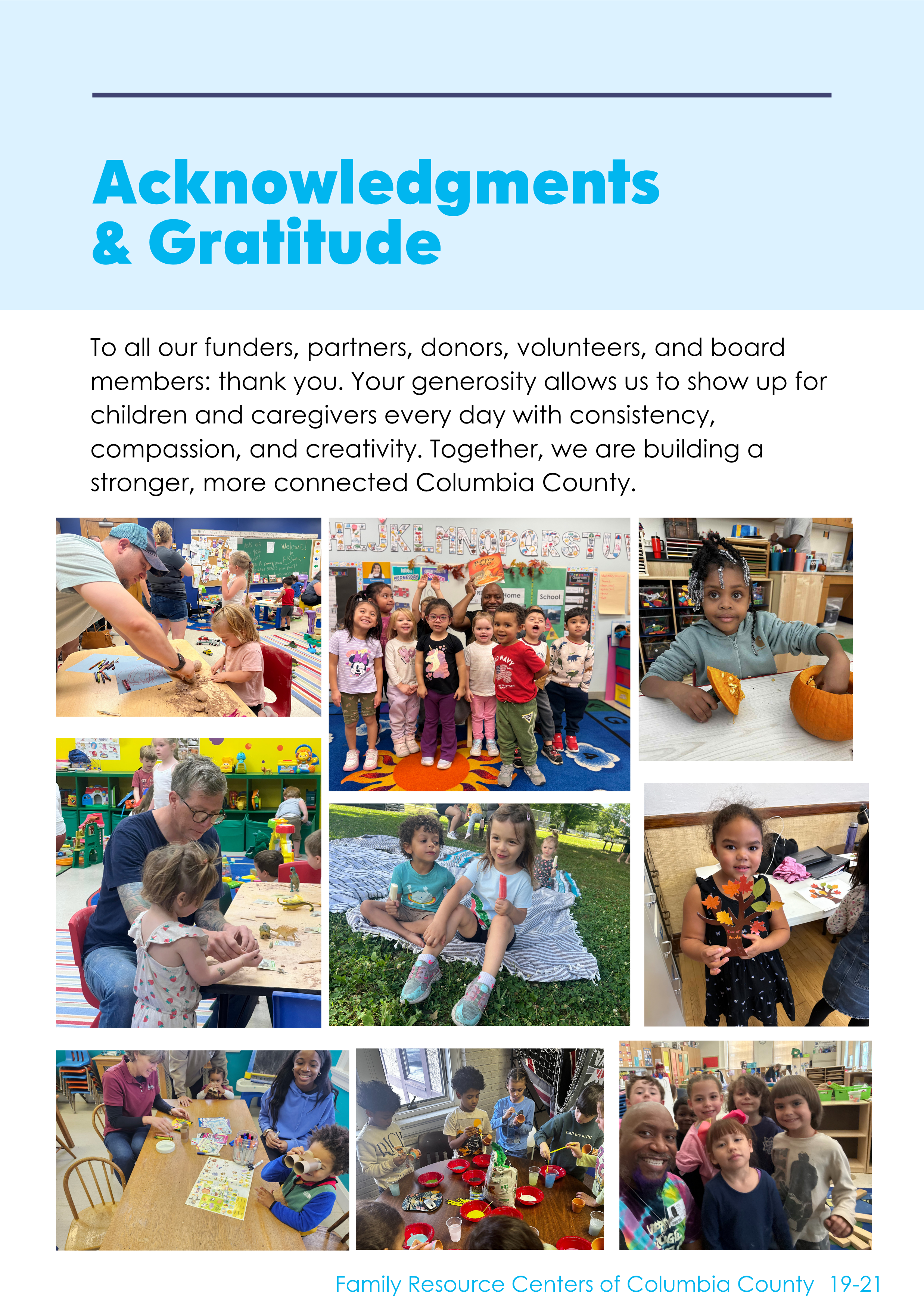 We are excited to share the Family Resource Centers of Columbia County 2025 Annual Report, celebrating a year of growth, community connection, and meaningful impact. Inside, you’ll find program highlights, stories from families, funder acknowledgments, financial summaries, and a look at what’s ahead as we continue supporting caregivers and young children across Columbia County.